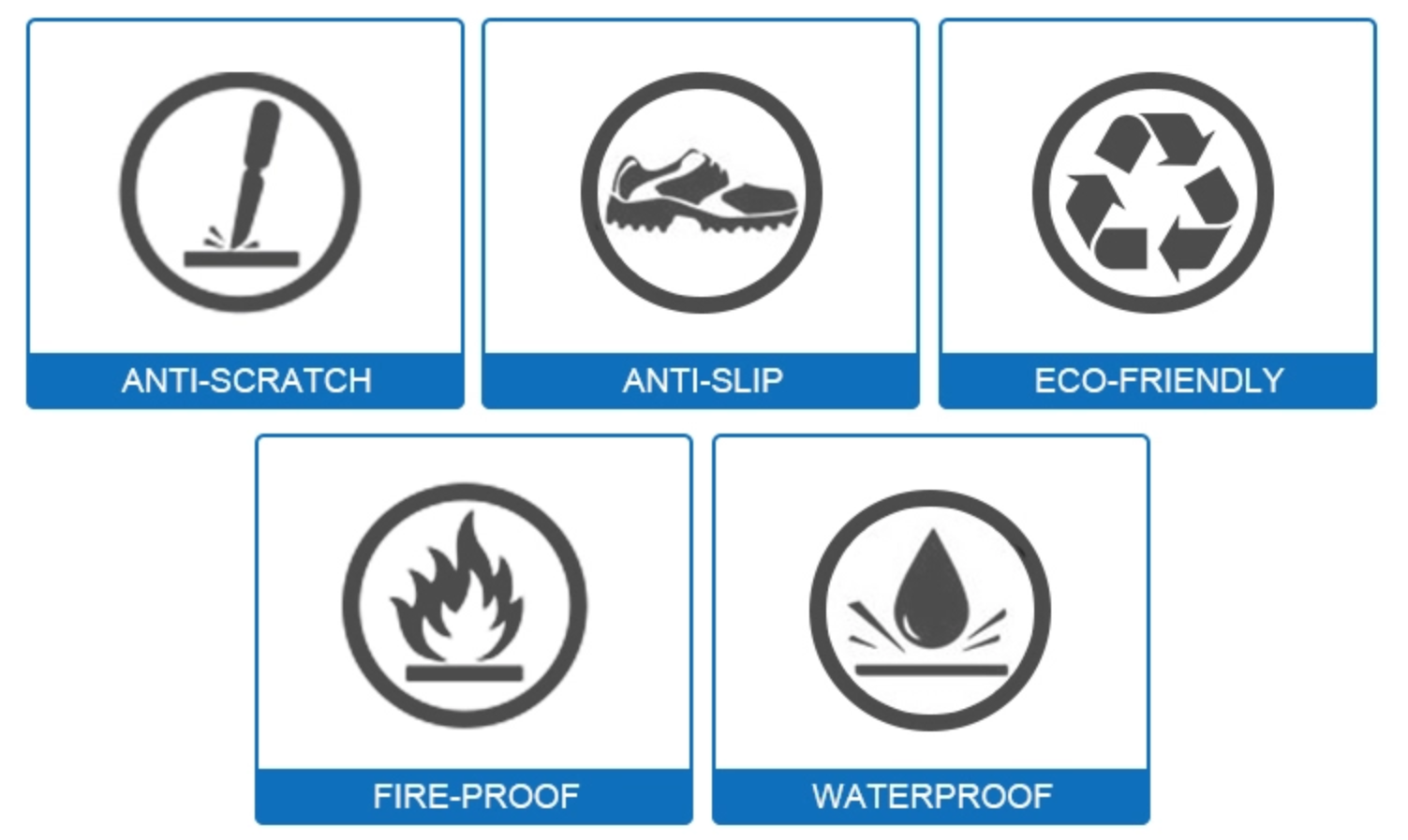 Features | ZERO Formaldehyde Emission, Anti-slip, Water Proof, Fire-resistance, Moth-proofing, Wear-resistance |